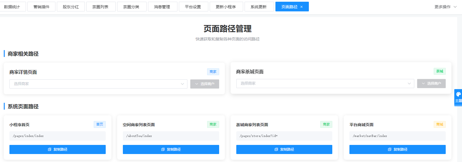 ### 模块意义: 快速获取和复制各种页面的访问路径,可用于公众号、小程序等对接使用