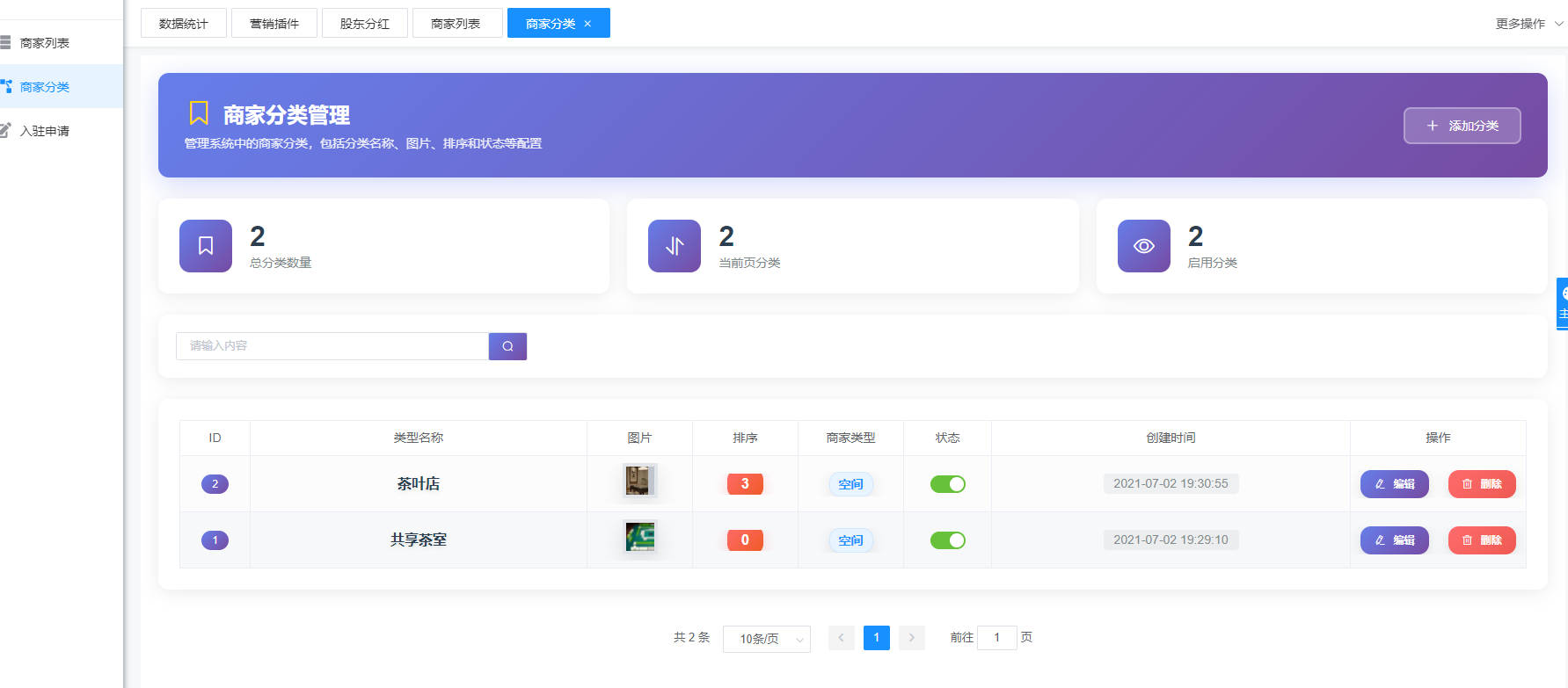 可以根据需求,设置不同的商家分类,如民宿、KTV、茶馆、棋牌室、健身房、瑜伽馆等, 只有先添加分类,才能添加商家